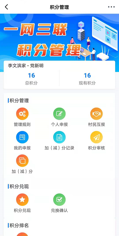 以網(wǎng)格片區(qū)為分支,戶為積分主體,通過排行榜、積分兌換等方式激活群眾參與積極性,人人都是參與者,人人都是受益者。