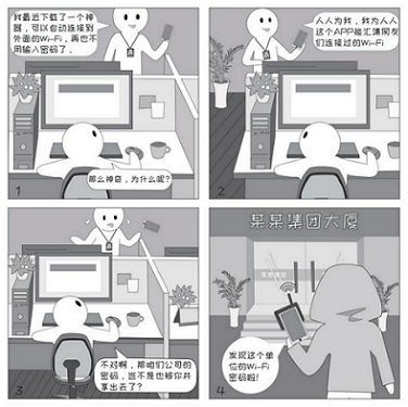 在辦公區(qū)域,使用單位提供的網(wǎng)絡(luò)接入方式,不要自行搭建個人熱點,不要使用“Wi-Fi分享器”等設(shè)備;如確有需要,在架設(shè)無線路由器前必須經(jīng)過單位批準,并進行安全檢查,Wi-Fi應(yīng)使用安全算法、設(shè)置復(fù)雜密碼、保證密碼定期更改。