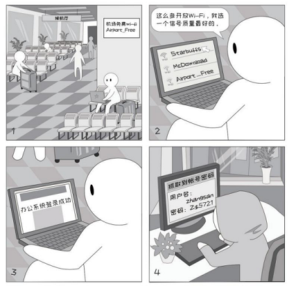 在餐廳、商場、火車站、機場等公眾場所,通常都部署了免費的Wi-Fi熱點,然而,攻擊者可能會創(chuàng)建一個有迷惑性的Wi-Fi熱點,一旦連接到這些惡意熱點,可能會導(dǎo)致信息泄露、流量劫持等風(fēng)險。