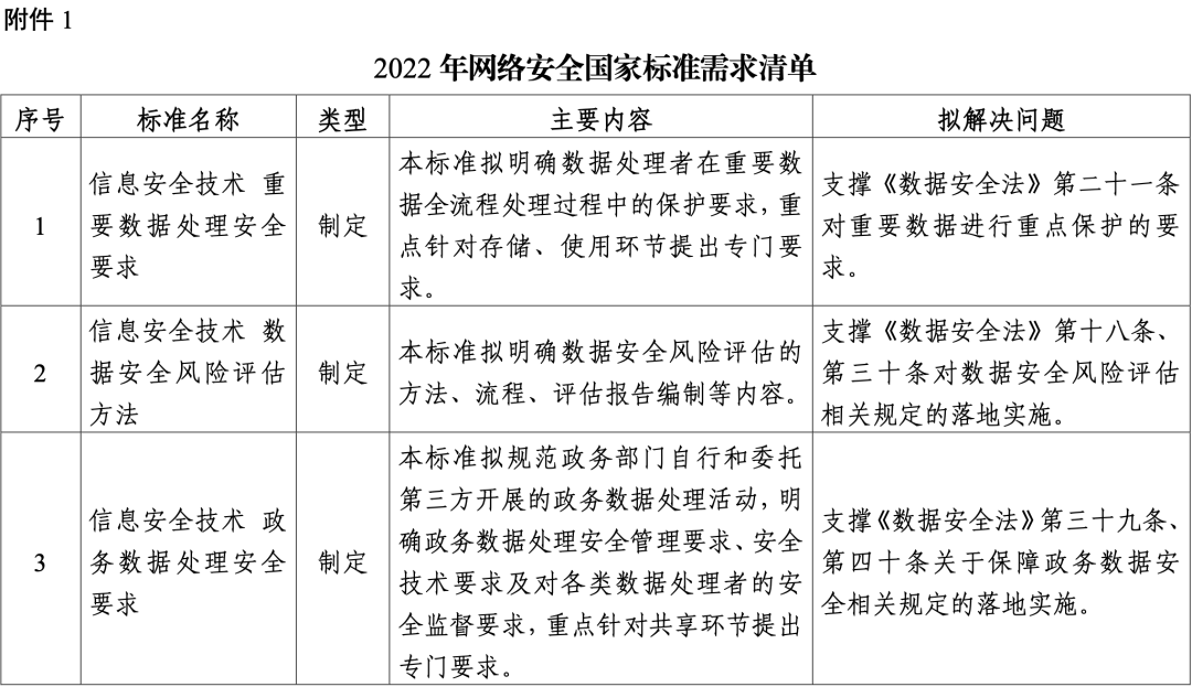 全國信安標委公布《2022年網(wǎng)絡(luò)安全國家標準需求清單》