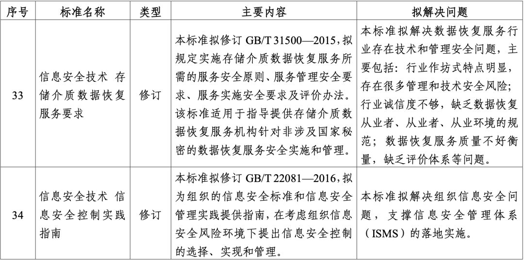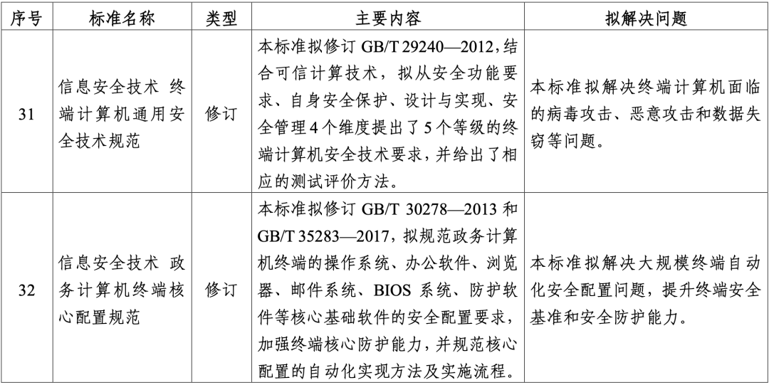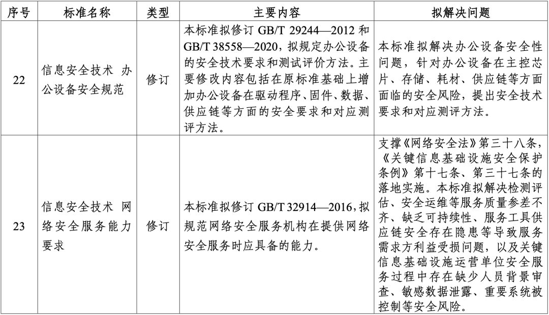 以下為2022年網(wǎng)絡(luò)安全國家標準需求清單: